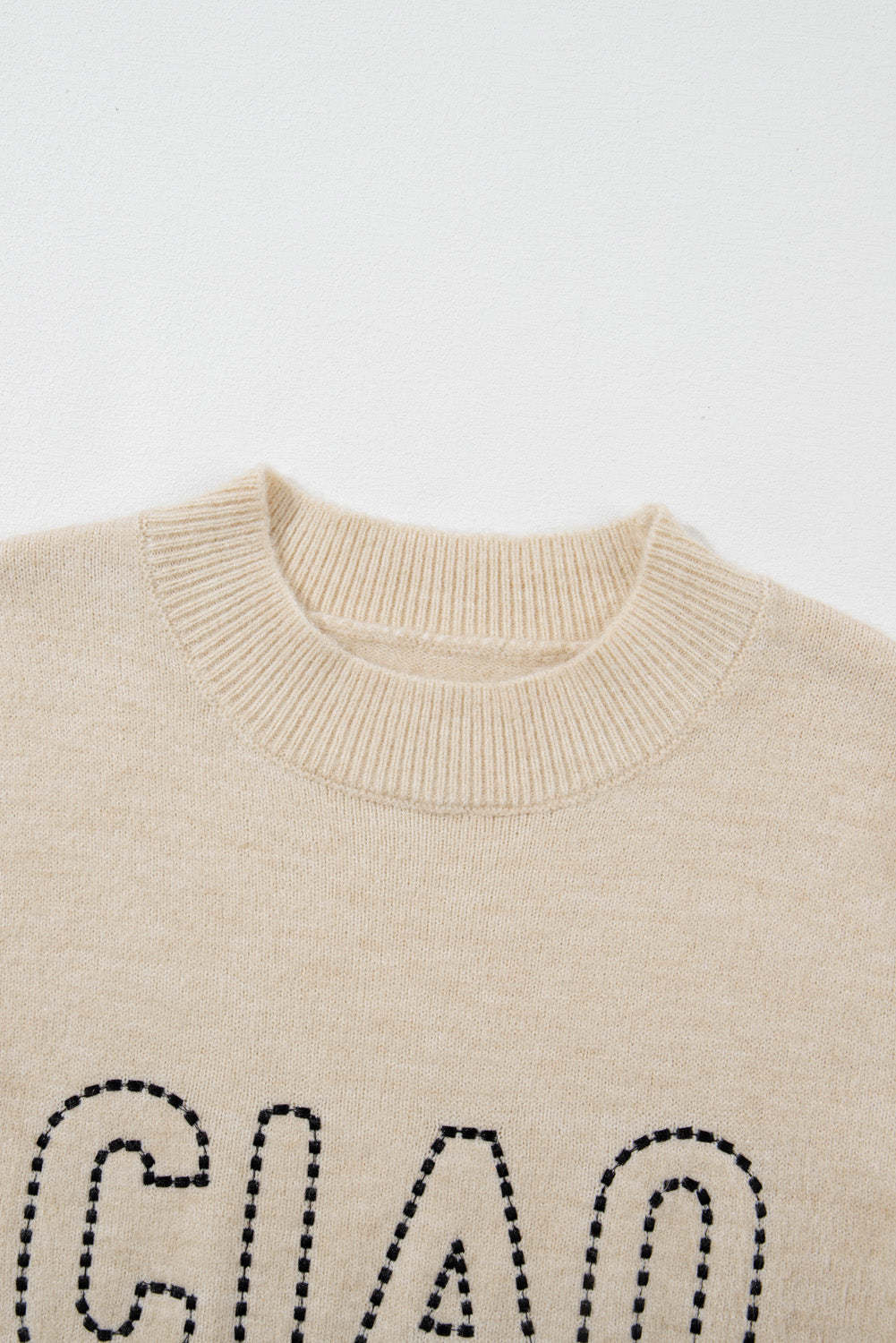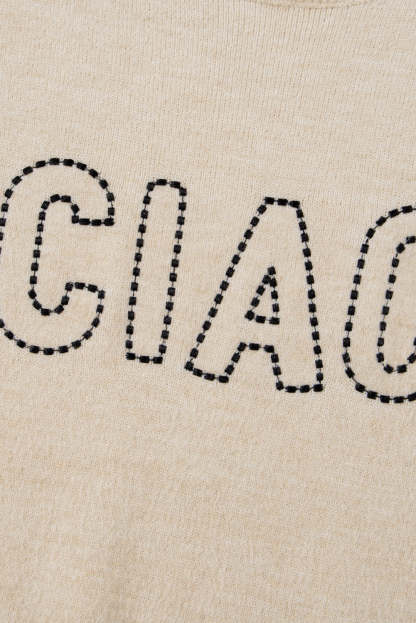 Oatmeal CIAO Letter Graphic Crew Neck Sweater